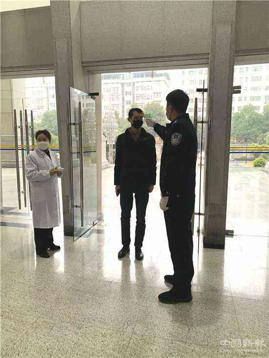 衡陽市院干警陳子桉嚴格對進行辦公樓人員進行體溫測量