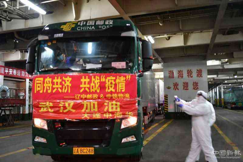 圖:一輛物資運輸車通過客船由大連運往煙臺,隨后開往湖北,走水路可節(jié)省將近1天時間/中新社