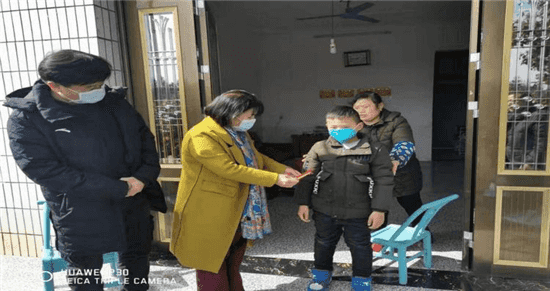 接下來連續(xù)幾天,陳家人都到村部陸陸續(xù)續(xù)辦理相關(guān)事宜。村上工作人員總是一杯熱茶,笑臉相迎,耐心細(xì)致的把所有手續(xù)都辦妥,然后詳細(xì)的向村黨總支部書記嚴(yán)君訴說了情況。嚴(yán)君聽后非常驚訝,同時一股敬佩之情油然而生,表示一定要去慰問一下英雄母親的后代,不能讓他們流血的同時又流淚。村黨總支部下屬金田黨小組在微信群發(fā)布消息,小組黨員們紛紛響應(yīng),短短個把小時就籌集愛心款1200元。2月12日下午,春光明媚,街道聯(lián)村領(lǐng)導(dǎo)劉佳富、村第一書記羅凱和嚴(yán)君、陳發(fā)英、陳執(zhí)明3位村支兩委成員以及老村干部黃冬連,一行人帶著善款來到小浩宇家中。