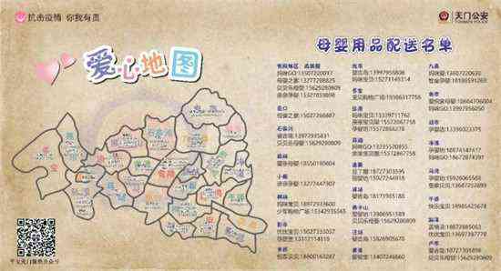 說干就干,民警們兵分三路,整合天門26個鄉(xiāng)鎮(zhèn)辦場園的43家母嬰資源信息,逐一核實商家資質(zhì)、地址、聯(lián)系電話,然后依照天門地圖,繪制出一張母嬰版“愛心地圖”。群眾可以選擇自己所在區(qū)域的配送商家,聯(lián)系下單,不再擔心孩子“斷糧”。