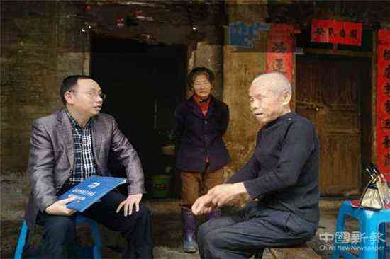 (圖為譚斌(左一)生前在走訪貧困戶)