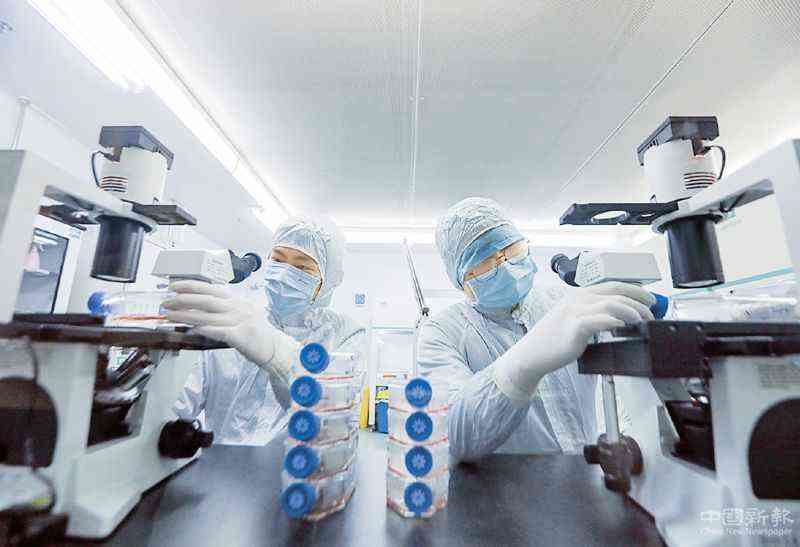 面對突發(fā)疫情,我國加大科研攻關(guān),提高檢測和醫(yī)療救治水平,進(jìn)一步加大衛(wèi)生健康領(lǐng)域補(bǔ)短板力度。圖為2020年3月18日,位于浙江省湖州市南太湖新區(qū)的協(xié)和華東干細(xì)胞基因工程有限公司內(nèi),工作人員正在研制干細(xì)胞療法治療新冠肺炎的新技術(shù)、新方法。 人民圖片 陸一平/攝