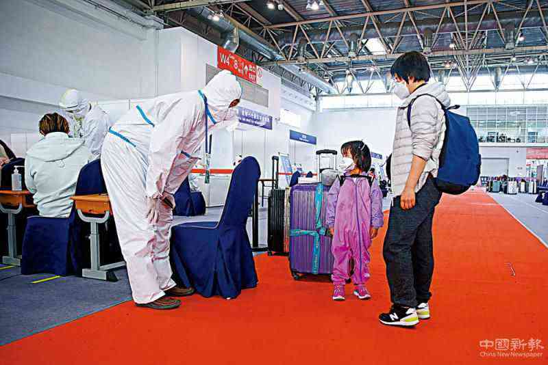 圖:中國駐美國大使館5日就留學(xué)生搭乘臨時包機意愿進行摸底調(diào)查。圖為3月25日,在北京的檢查入境人員集散點內(nèi),工作人員在同一名入境的小朋友交談\中新社