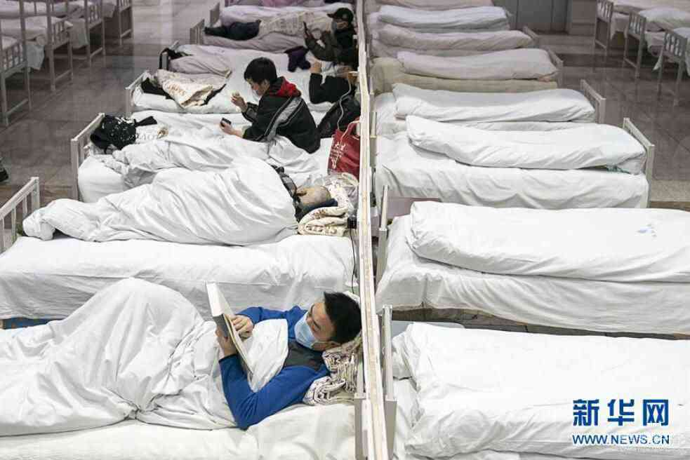 2月5日,在武漢江漢方艙醫(yī)院,付先生在床上看書。新華社記者 熊琦 攝