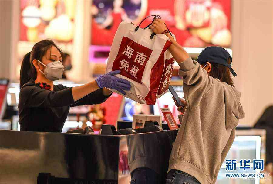 顧客在海口日月廣場(chǎng)免稅店內(nèi)購(gòu)物(2月20日攝)。新華社發(fā)(蒲曉旭 攝)