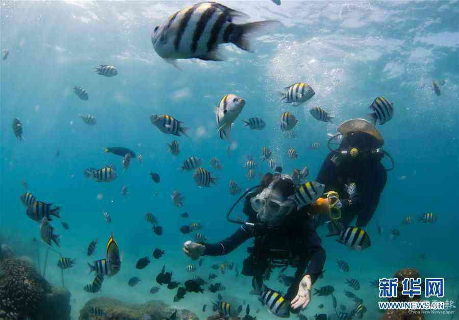 游客在分界洲島海域體驗(yàn)潛水(2019年7月20日攝)。新華社記者 楊冠宇 攝