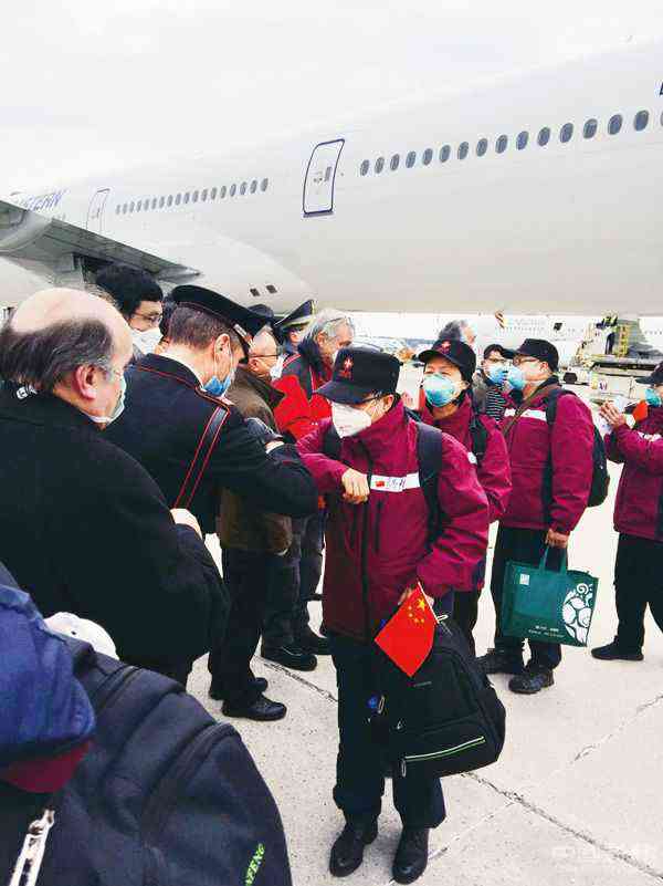 2020年3月25日,在意大利米蘭馬爾奔薩機(jī)場,意方人員以“擊肘”的方式歡迎中國第三批赴意大利抗疫醫(yī)療專家組成員的到來。中國第三批赴意大利抗疫醫(yī)療專家組一行14人25日抵達(dá)米蘭馬爾奔薩機(jī)場。專家組由國家衛(wèi)生健康委員會(huì)組建,成員由福建省衛(wèi)健委選派,并隨所乘飛機(jī)攜帶了呼吸機(jī)、監(jiān)護(hù)儀、口罩等中方捐助的醫(yī)療物資。 新華社發(fā)
