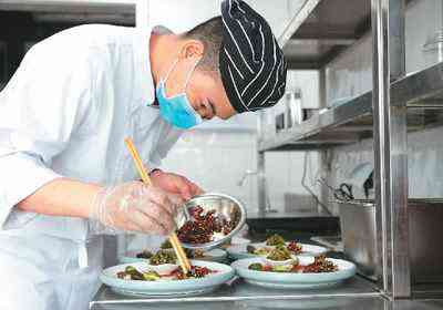 4月15日,四川省成都市一家川菜餐廳的廚師在準(zhǔn)備分餐制菜品。新華社記者 李夢馨攝