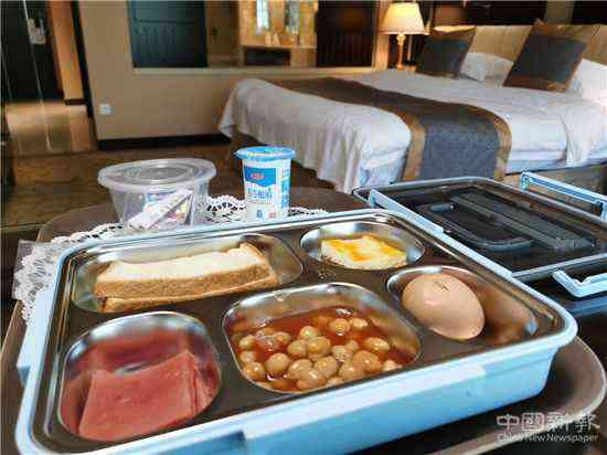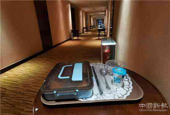 圖:兩會(huì)期間實(shí)行嚴(yán)格的防疫措施,工作人員將早餐直接送到記者房門口(大公文匯全媒體記者攝)