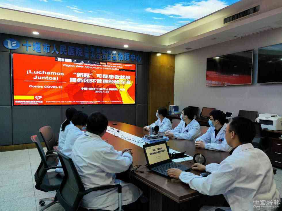 湖北省十堰市人民醫(yī)院醫(yī)護人員正在進行疫情下醫(yī)院閉環(huán)管理經(jīng)驗交流的直播講座。(“全球抗疫志愿者聯(lián)盟”提供)