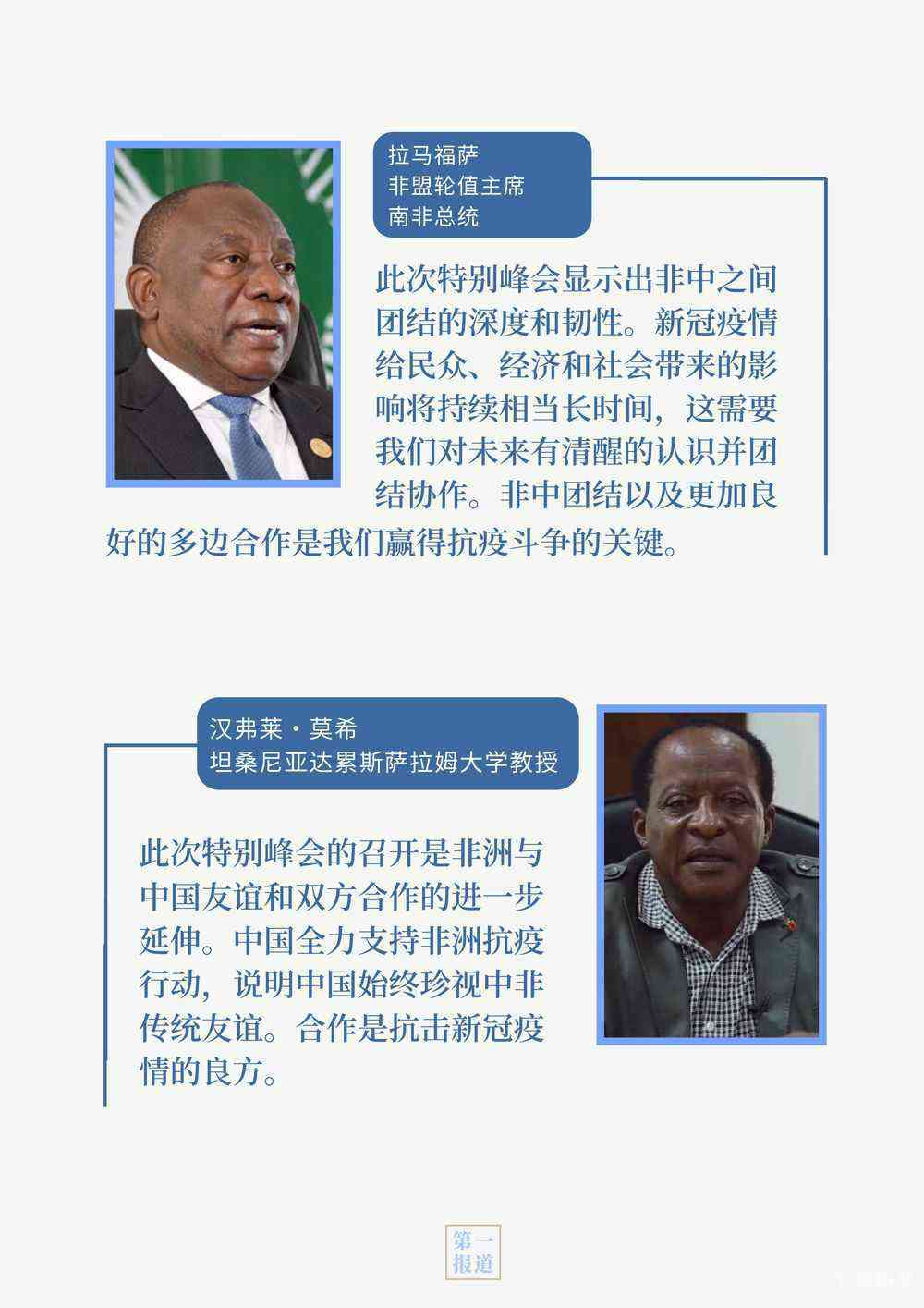 在此次峰會(huì)上,習(xí)主席提出四個(gè)“堅(jiān)定不移”,為中非抗疫合作指明方向,為中非關(guān)系未來(lái)擘畫(huà)藍(lán)圖。一句句真誠(chéng)倡議、一項(xiàng)項(xiàng)務(wù)實(shí)舉措,讓非洲國(guó)家感受到兄弟無(wú)遠(yuǎn)的中國(guó)情誼,讓國(guó)際社會(huì)感受到團(tuán)結(jié)抗疫的中國(guó)擔(dān)當(dāng)。