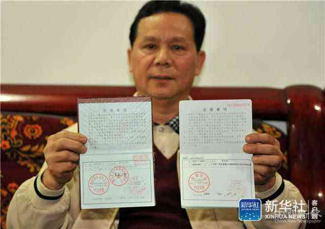 ↑53歲的李會成通過積分入戶成為了一名“新廣州人”,他的廣西戶口本(左)換成了廣東戶口本(1月18日攝)。新華社記者 盧漢欣 攝