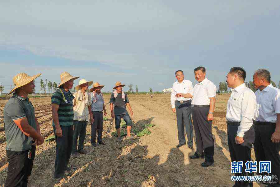 8月18日至21日,中共中央總書記、國(guó)家主席、中央軍委主席習(xí)近平在安徽省考察。這是18日下午,習(xí)近平在阜陽(yáng)市阜南縣蒙洼蓄洪區(qū),同正在退水地塊補(bǔ)種蔬菜的鄉(xiāng)親們親切交流。 新華社記者 鞠鵬 攝