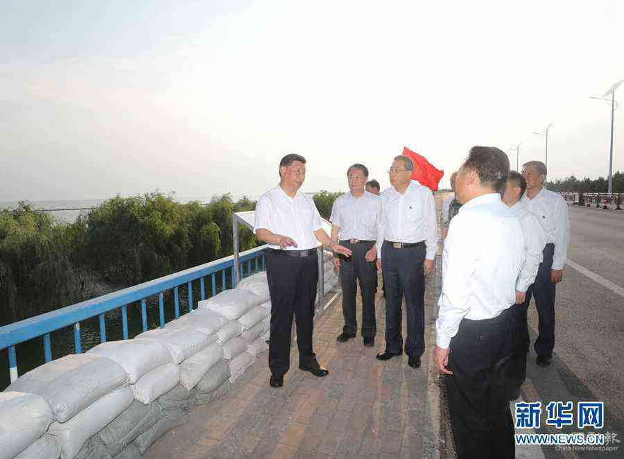 19日下午,習(xí)近平來到合肥市肥東縣十八聯(lián)圩生態(tài)濕地蓄洪區(qū)巢湖大堤羅家疃段考察。今年入汛以來,巢湖水位多次突破歷史極值,合肥市主動(dòng)啟用十八聯(lián)圩及周邊圩區(qū)蓄洪。習(xí)近平仔細(xì)察看巢湖水勢(shì)水情,聽取環(huán)巢湖主要圩口分洪及周邊濕地蓄洪、巢湖綜合治理情況匯報(bào),了解防汛物資和大堤加固情況。他強(qiáng)調(diào),要堅(jiān)持濕地蓄洪區(qū)的定位和規(guī)劃,盡快恢復(fù)生態(tài)濕地蓄洪區(qū)的行蓄洪功能和生態(tài)保護(hù)功能。他指出,當(dāng)前,南方有關(guān)地方要繼續(xù)抓好防汛救災(zāi)工作,同時(shí)要嚴(yán)防次生災(zāi)害。北方有關(guān)地方要對(duì)可能發(fā)生的汛情加強(qiáng)警戒和防范,全面落實(shí)防汛救災(zāi)各項(xiàng)工作,確保安全度汛,確保人民群眾生命財(cái)產(chǎn)安全。