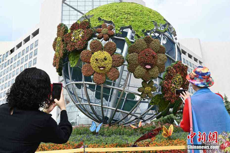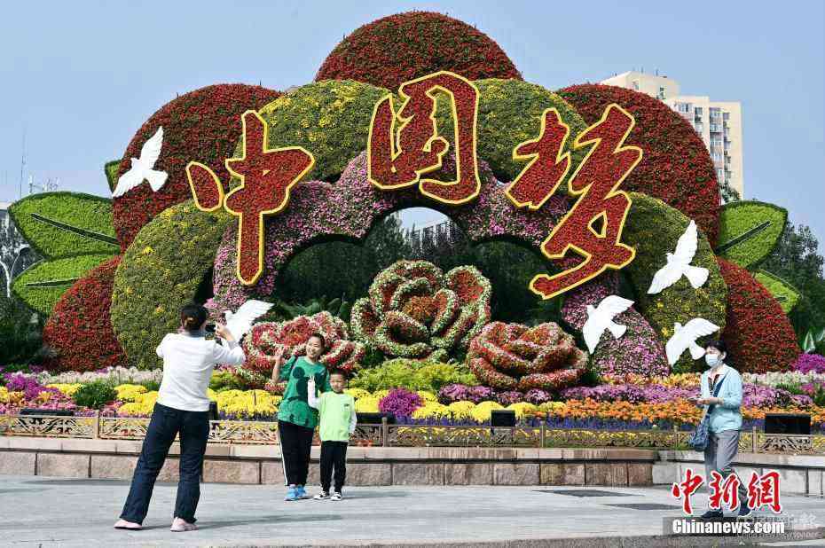 9月26日,市民在北京西單路口西北角《命運(yùn)共同體》國(guó)慶主題花壇前拍照。 中新社記者 張興龍 攝