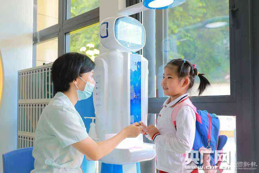負(fù)責(zé)晨檢的AI機(jī)器人,可以幫助小朋友完成身高、體重、體溫、手足口檢測等(央廣網(wǎng)發(fā) 通訊員供圖)