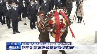 當(dāng)?shù)貢r(shí)間21日,以中共中央總書記、國家主席、中央軍委主席習(xí)近平名義向朝鮮平壤中朝友誼塔、檜倉中國人民志愿軍烈士陵園敬獻(xiàn)花籃儀式在朝鮮舉行。中國駐朝鮮大使率全體館員及其他在朝中方人員代表出席。
