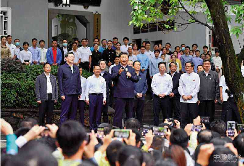 圖:第十九屆中央委員會第五次全體會議26日召開。中央委員會總書記習近平向全會作工作報告。圖為9月17日,習近平在湖南大學考察時,同師生們親切交流/新華社
