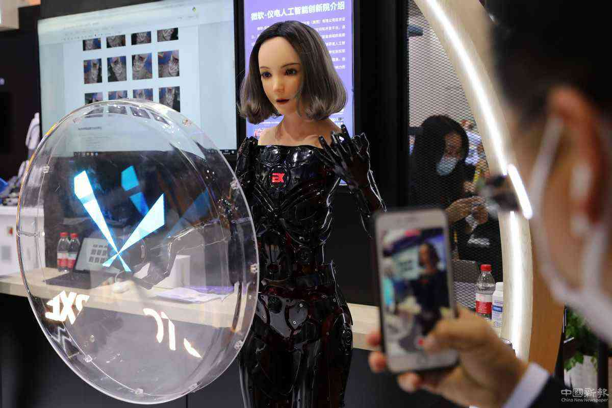 11月6日,在上海進(jìn)博會(huì)技術(shù)裝備展區(qū),仿真機(jī)器人吸引參觀者拍攝。 中國(guó)日?qǐng)?bào)記者 王壯飛 攝