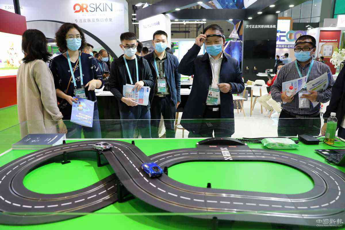 11月6日,在上海進(jìn)博會(huì)服務(wù)貿(mào)易展區(qū),參觀者體驗(yàn)?zāi)X電波賽車(chē)游戲。 中國(guó)日?qǐng)?bào)記者 王壯飛 攝