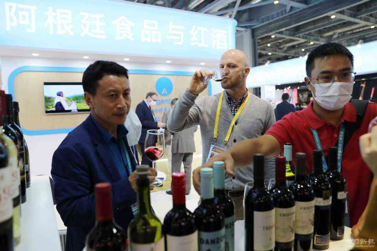 11月6日,在上海進(jìn)博會(huì)食品及農(nóng)產(chǎn)品展區(qū),參觀者品嘗阿根廷紅酒。 中國(guó)日?qǐng)?bào)記者 王壯飛 攝