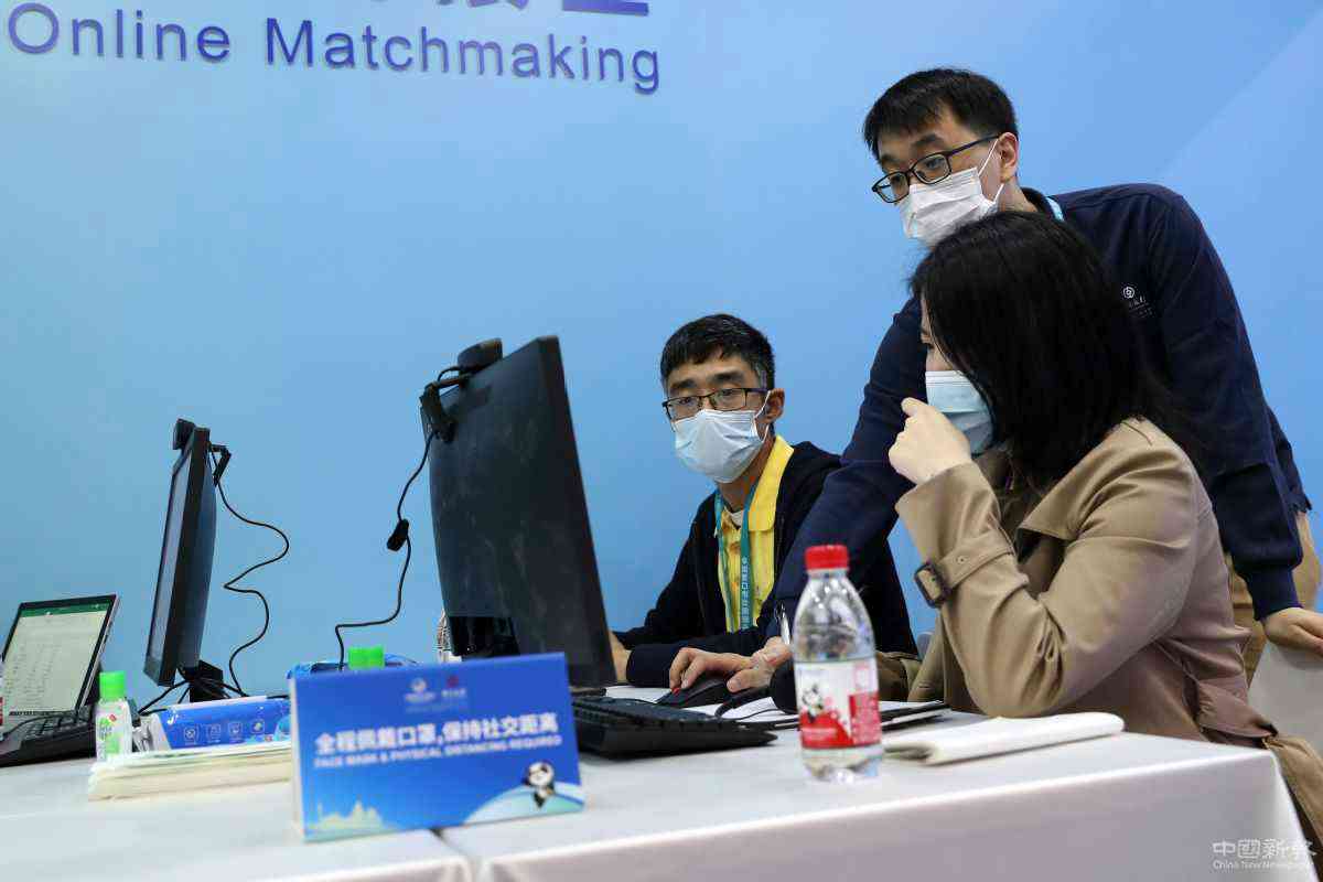 11月6日,展商在上海進(jìn)博會(huì)視頻對(duì)接區(qū)洽談。 中國(guó)日?qǐng)?bào)記者 王壯飛 攝