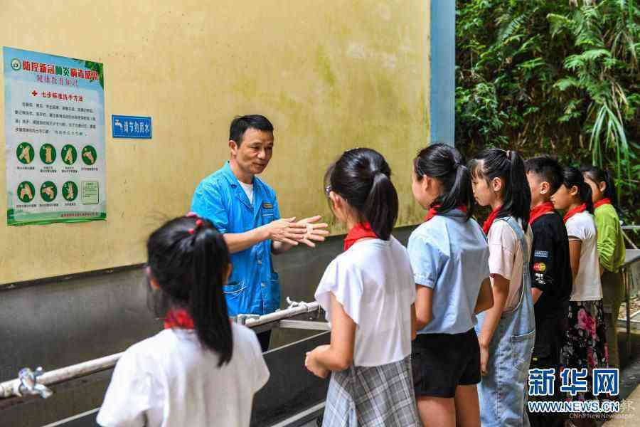 廣西金秀瑤族自治縣長(zhǎng)垌鄉(xiāng)衛(wèi)生院的瑤族醫(yī)生陶雷在給小學(xué)生講解正確的洗手方法(7月8日攝)。新華社記者 曹祎銘 攝