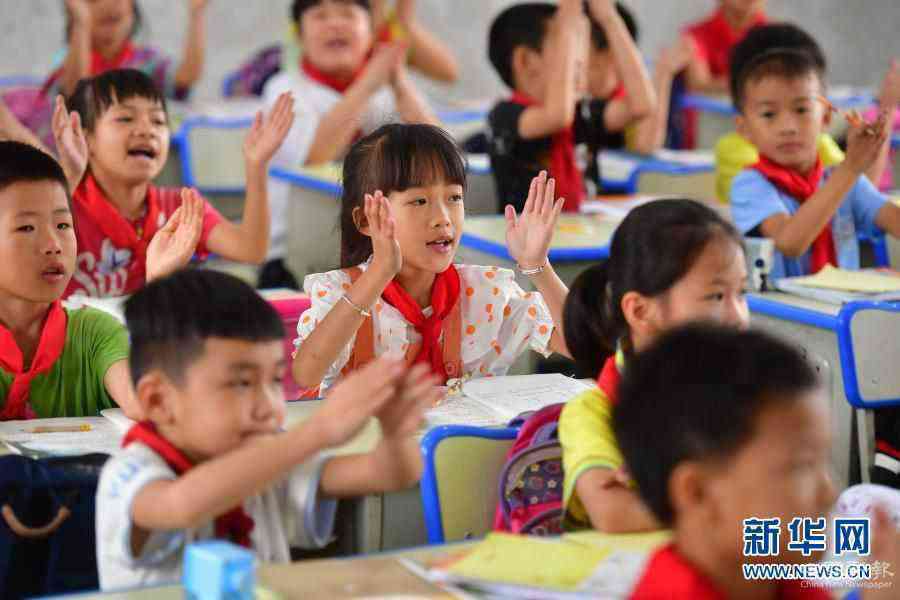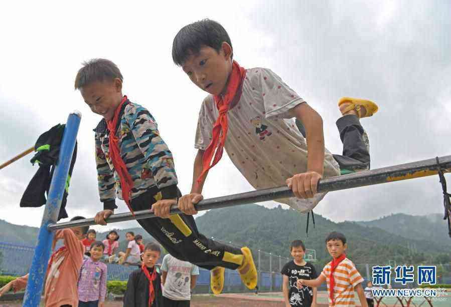 在廣西百色市凌云縣泗城鎮(zhèn)金保村覽金小學(xué),孩子們?cè)阱憻捝眢w(9月8日攝)。新華社記者 周華 攝