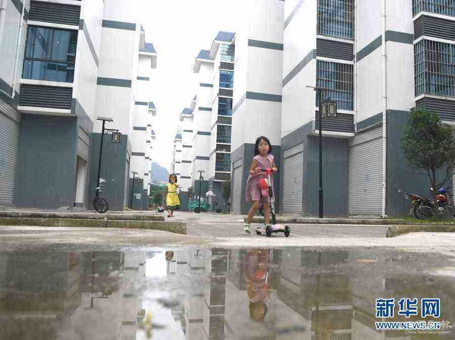 孩子們?cè)趶V西都安瑤族自治縣東廟鄉(xiāng)易地扶貧搬遷小區(qū)玩耍(8月18日攝)。新華社記者 周華 攝