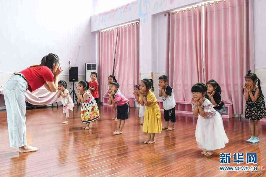 廣西興業(yè)縣城西幼兒園的老師與小朋友們一起排練“六一”兒童節(jié)節(jié)目(5月29日攝)。新華社記者 曹祎銘 攝