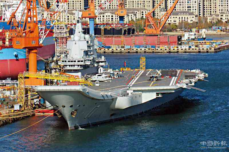圖:11月20日,山東艦在大連造船廠碼頭停泊\大公報(bào)記者宋偉攝