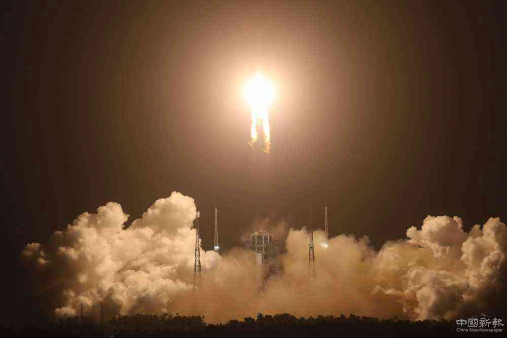 11月24日4時30分,搭載嫦娥五號探測器的長征五號遙五運載火箭在中國文昌航天發(fā)射場點火升空。(新華社記者金立旺攝)