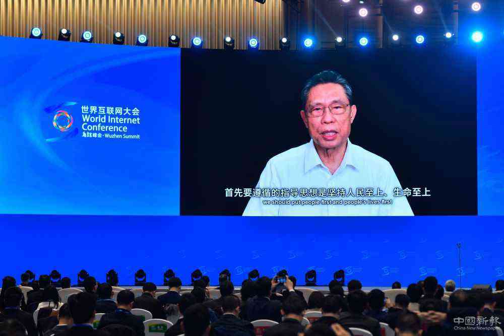 中國(guó)工程院院士鐘南山在世界互聯(lián)網(wǎng)大會(huì)·互聯(lián)網(wǎng)發(fā)展論壇“數(shù)字經(jīng)濟(jì)與科技抗疫”主論壇上以視頻形式發(fā)表演講(11月23日攝)。新華社記者 黃宗治 攝
