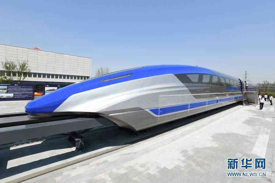 這是2019年5月23日在山東青島拍攝的我國時速600公里高速磁浮試驗樣車。新華社記者 李紫恒 攝