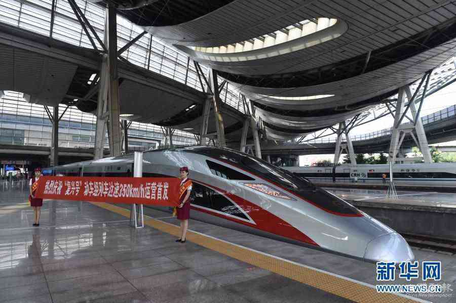 這是在北京南站拍攝的“復(fù)興號”列車(2017年9月21日攝)。當(dāng)日,“復(fù)興號”以350公里時速在京滬線上正式運營。新華社記者 羅曉光 攝