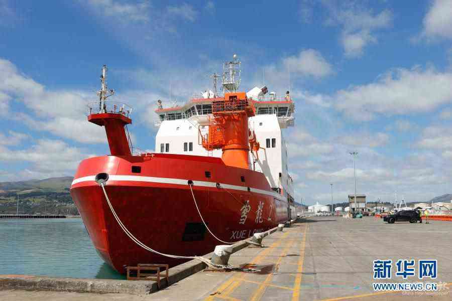 11月28日,“雪龍2”號(hào)極地科考破冰船停靠在新西蘭南島克賴斯特徹奇市利特爾頓港。