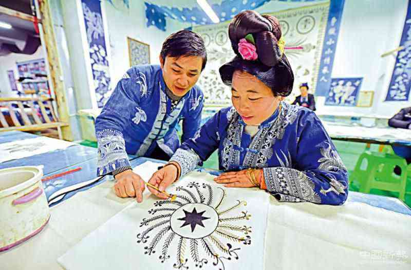 圖:在貴州省黔東南苗族侗族自治州丹寨縣金泉街道千年傳蠟染制作坊,易地扶貧搬遷群眾正學(xué)習(xí)畫蠟畫\新華社