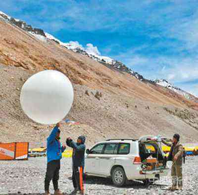 西藏自治區(qū)氣象局2020珠峰高程測(cè)量氣象探測(cè)保障服務(wù)隊(duì)施放高空氣象探測(cè)氣球。自然資源部供圖