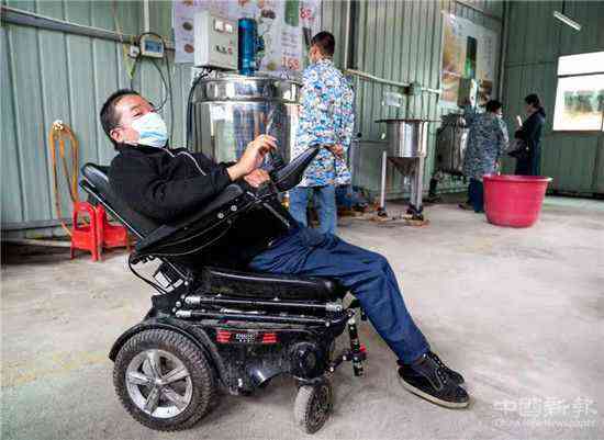 他叫張赫倫。記者眼前的他,仰天躺在電動(dòng)輪椅上,全身重度癱瘓,僅手指關(guān)節(jié)才能活動(dòng)。他用唯一能活動(dòng)的手指操控輪椅,帶記者參觀他的化妝品原材料加工車間和種植基地。