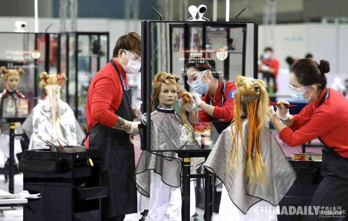 選手在美發(fā)項(xiàng)目比賽中。(中國(guó)日?qǐng)?bào)記者 鄒紅 攝)