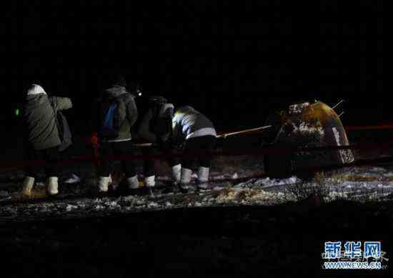 12月17日,工作人員在嫦娥五號(hào)返回器著陸現(xiàn)場(chǎng)作業(yè)。新華社記者 連振 攝