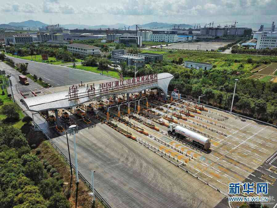 這是9月29日拍攝的甬舟高速舟山收費(fèi)站(無人機(jī)照片)。位于浙江舟山群島新區(qū)的浙江自貿(mào)試驗區(qū)掛牌運(yùn)行以來,建設(shè)有序推進(jìn),重點(diǎn)推進(jìn)國際油氣交易中心、國際油氣儲運(yùn)基地、國際海事服務(wù)基地、國際石化基地、大宗商品跨境貿(mào)易人民幣國際化示范區(qū)等“一中心三基地一示范區(qū)”建設(shè),在油氣儲運(yùn)、煉化、加工、海事服務(wù)等領(lǐng)域呈現(xiàn)龍頭引領(lǐng)、鏈條延伸、輻射帶動的溢出效應(yīng)。新華社記者 徐昱 攝