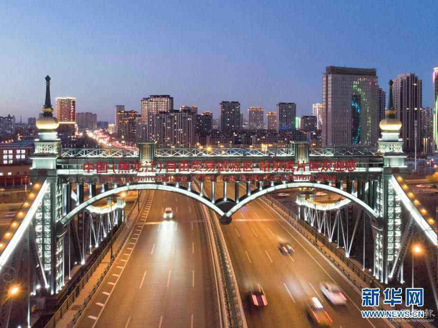 這是11月13日拍攝的位于陽明灘大橋上的中國(黑龍江)自由貿(mào)易試驗區(qū)哈爾濱片區(qū)“大門”(無人機(jī)照片)。中國(黑龍江)自由貿(mào)易試驗區(qū)哈爾濱片區(qū)自掛牌運(yùn)行以來,重點(diǎn)發(fā)展新一代信息技術(shù)、新材料、高端裝備、生物醫(yī)藥等戰(zhàn)略性新興產(chǎn)業(yè),有序推進(jìn)科技、金融、文化旅游等現(xiàn)代服務(wù)業(yè)和寒地冰雪經(jīng)濟(jì),建設(shè)對俄羅斯及東北亞全面合作的承載高地和聯(lián)通國內(nèi)、輻射歐亞的國家物流樞紐,打造東北全面振興全方位振興的增長極和示范區(qū)。新華社發(fā)(張濤 攝)