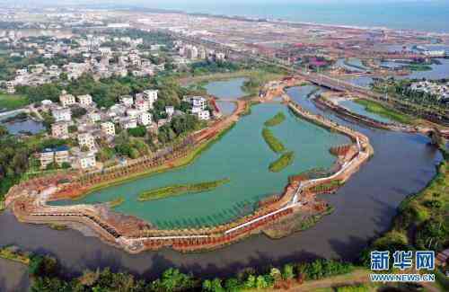 這是??谑薪瓥|新區(qū)芙蓉河綜合治理工程(11月6日攝,無人機(jī)照片)。新華社記者郭程攝