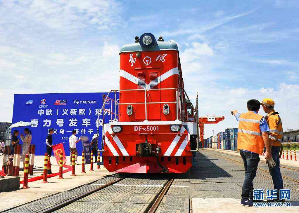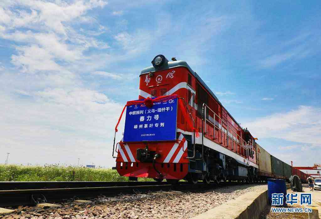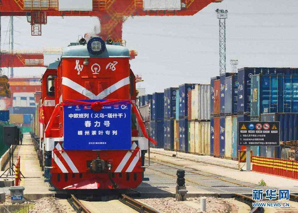 6月8日,滿(mǎn)載茶葉及茶產(chǎn)品的中歐班列從義烏西站啟程。