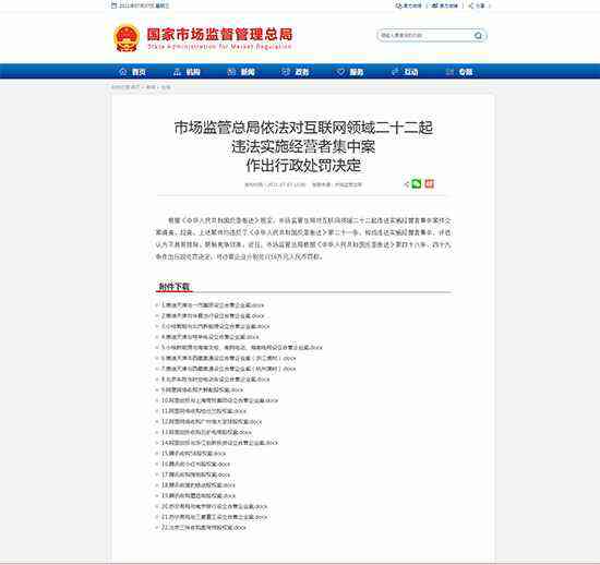 互聯(lián)網(wǎng)領(lǐng)域22起違法實(shí)施經(jīng)營者集中案行政處罰決定公布