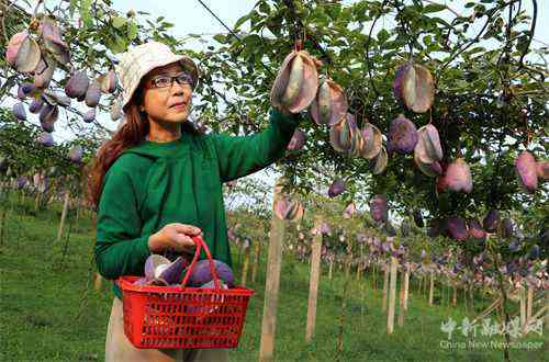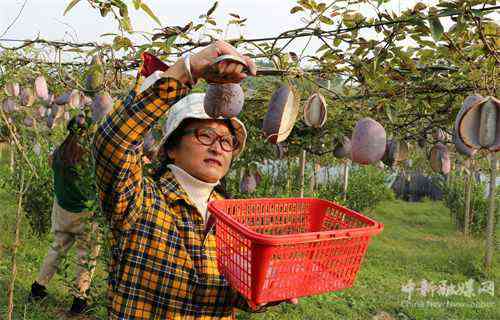 八月瓜俗稱“八月炸”,是一種食藥同源型野生藤本水果,當?shù)厍嗄贽r(nóng)民黃以永、王衛(wèi)勤夫婦從秦嶺地區(qū)引進種植,一般在農(nóng)歷八月以后,瓜果外皮成熟裂開,露出乳白色的果肉。其果型為橄欖形,味道鮮美營養(yǎng)豐富,憑借其高“顏值”刷爆網(wǎng)絡(luò),成為蜚聲市場的一種“網(wǎng)紅水果”,吸引眾多游客前去采摘購買。今年是第三年掛果,可產(chǎn)鮮果3萬多公斤,產(chǎn)值達30多萬元。 (特約記者 巢志斌 攝影報道)
