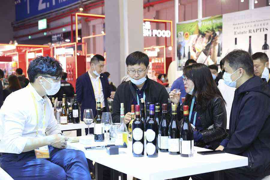 11月6日,觀眾在食品及農(nóng)產(chǎn)品展區(qū)品嘗葡萄酒。(中國(guó)日?qǐng)?bào)記者 馮永斌 攝)