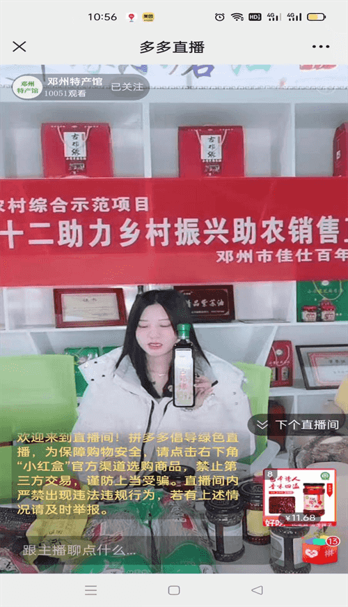 河南鄧州“雙十二”助力鄉(xiāng)村振興直播推廣銷售額突破3萬元