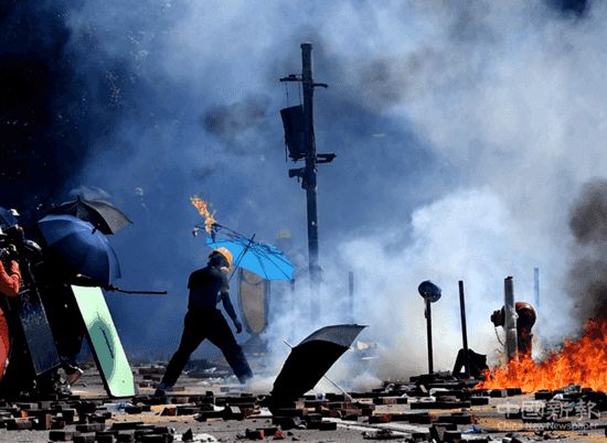 暴徒當(dāng)時(shí)在香港理工大學(xué)外縱火。(新華資料圖片)